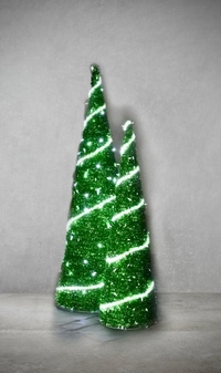 Декорирована ярким уличным дюролайтом и светодиодами и мишурным полотном.