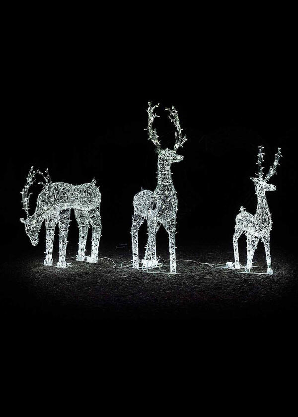 Эта прекрасная Новогодняя композиция состоит из двух оленей серии 1,9 м и одного олененка 1,5 м.