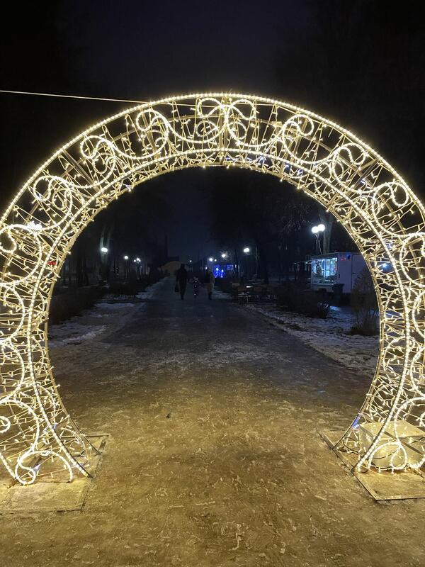 Декорирована ярким уличным дюролайтом и светодиодами