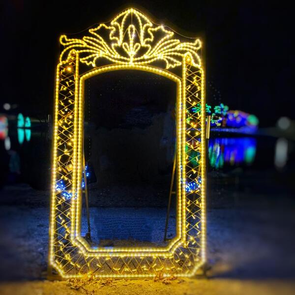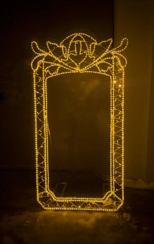 Световая фотозона не займет много места, может быть использована круглый год в помещении и на улице.