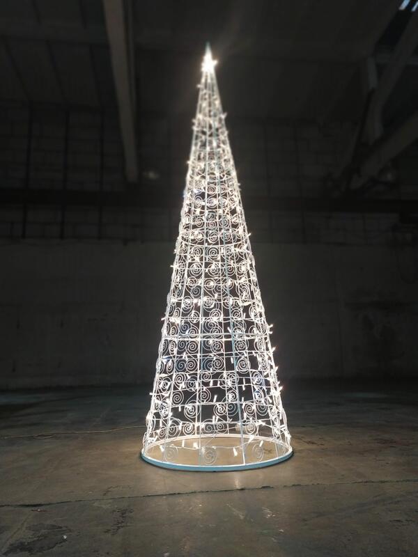 Простое по форме, классическое световое дерево-конус гармонично дополнит любую локацию,