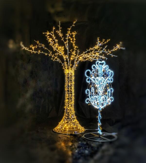 Обьемное световое дерево завораживает своим ярким сказочным мерцанием.