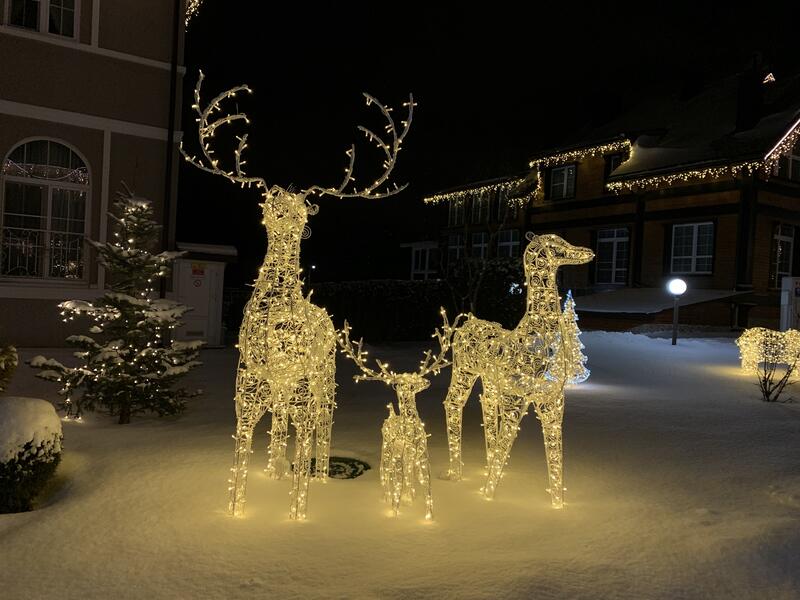 Эта прекрасная Новогодняя композиция состоит из двух оленей серии 1,9 м и одного олененка 1,5 м.