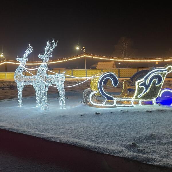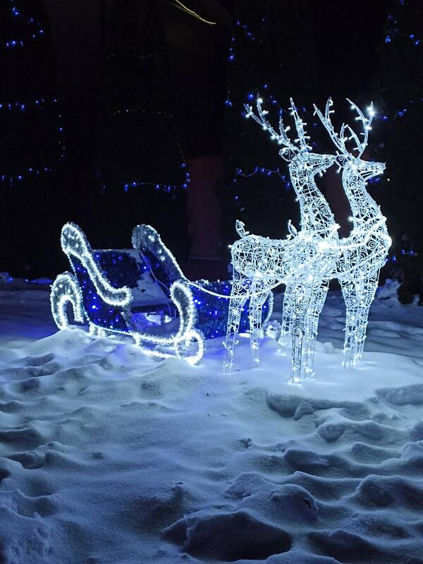Декор: Мишура из ПВХ, Светодиодные нити и дюролайт по контуру